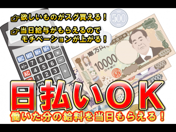 | favorite_border待遇 | ■即日払い(現金) ■ユニフォーム貸与 L毎日返却!自分で洗濯しなくてOK ■車 バイク通勤OK(敷地内無料駐車場) 《受動喫煙防止対策あり》 ■敷地内原則禁煙(屋内 喫煙室あり) |